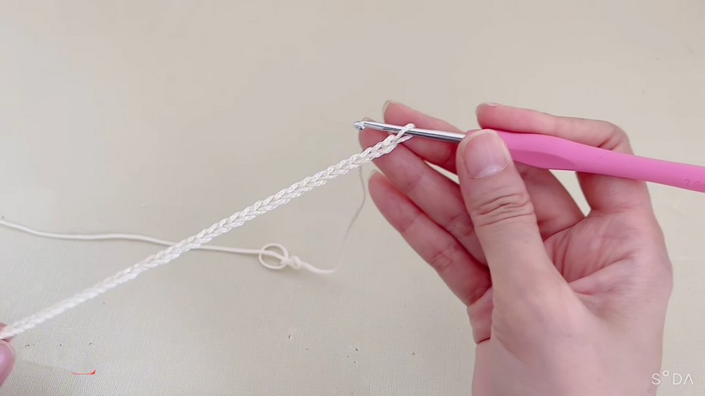 - Then chain 7, 8, and 9 with single crochet stitches.
