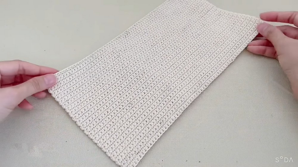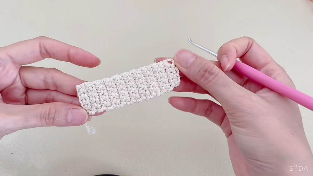 - Continue the pattern of chaining 1, turning, and working single crochets across every row.