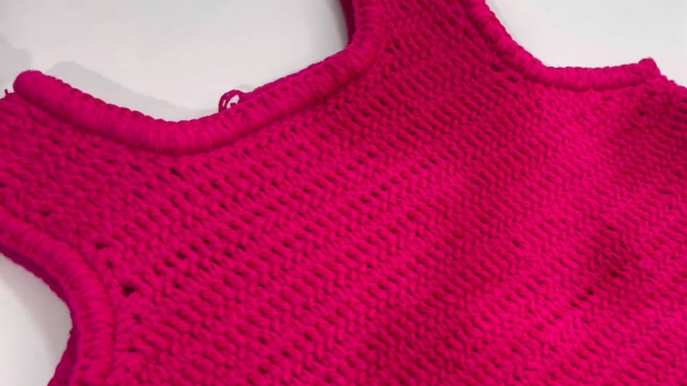 - Repeat the same cord and sc edging technique around neckline for a consistent finish.