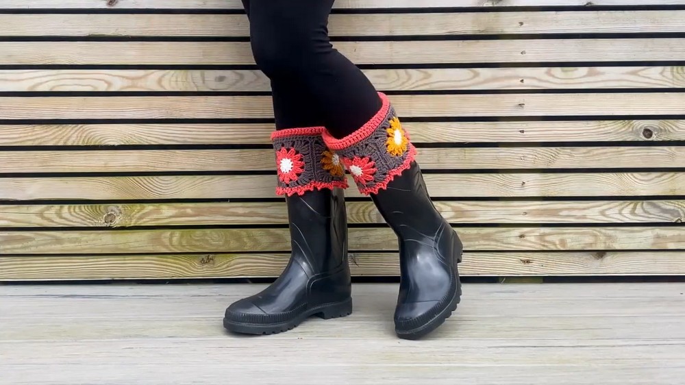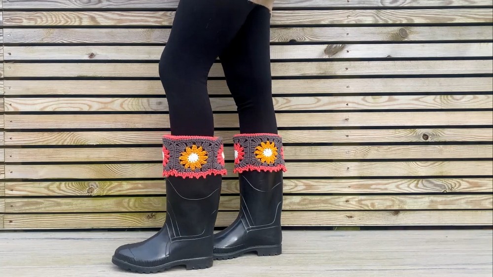 Crochet Daisy Granny Square Boot Cuffs Pattern