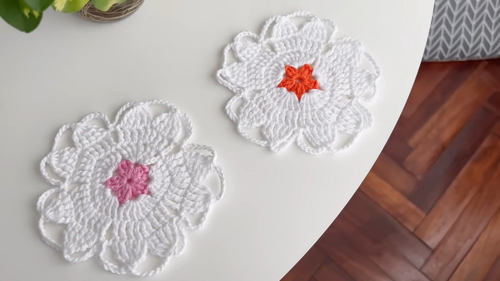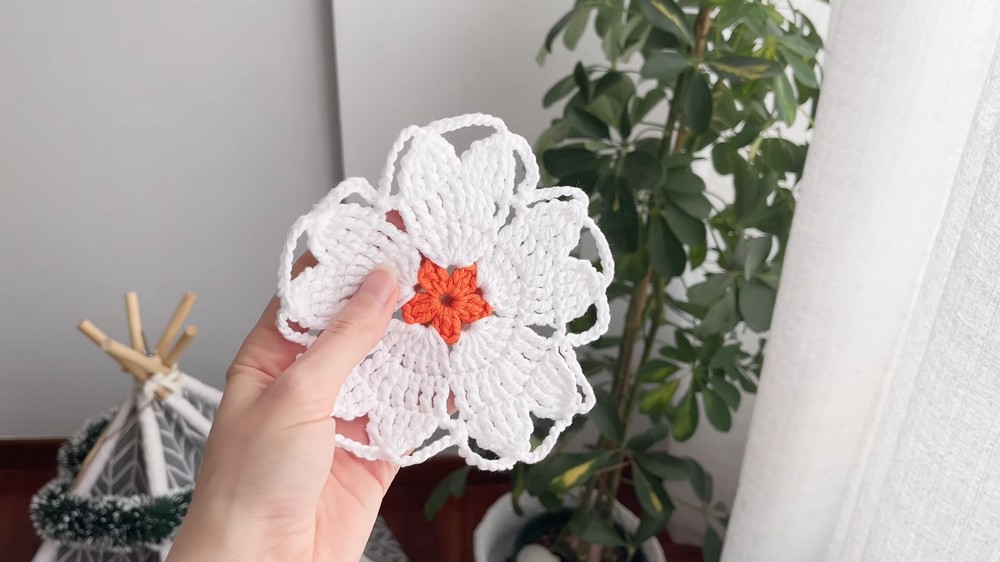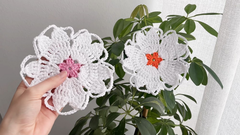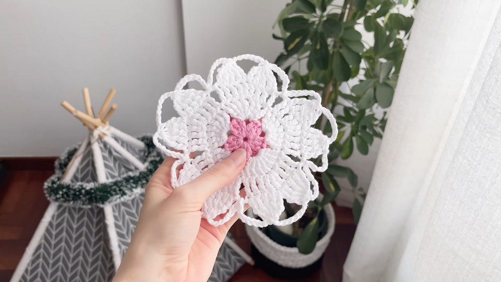 Beautiful Free Crochet Sakura Flower Coaster Pattern For Home Decor