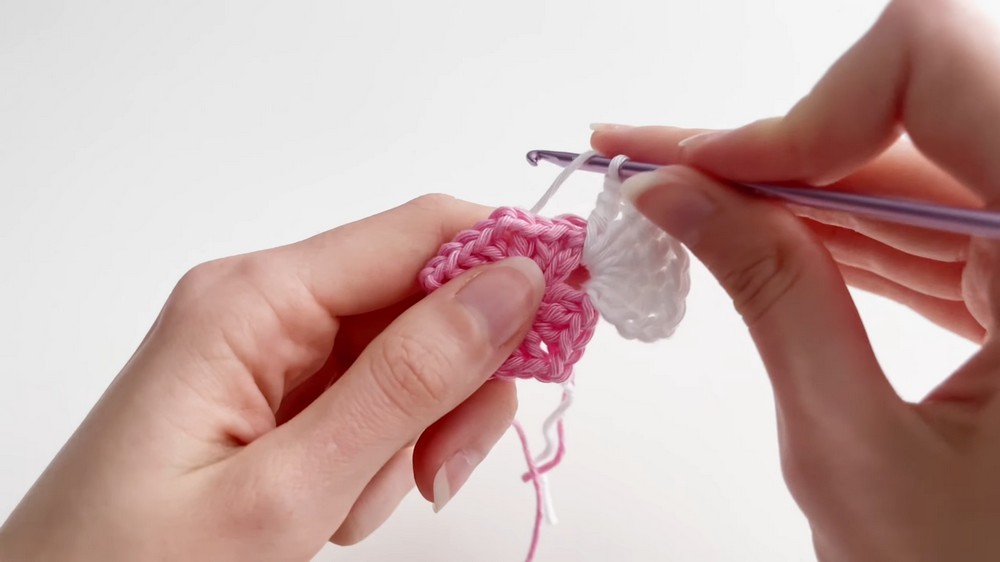 - Wrap yarn twice around your hook, insert into the space, pull up a loop, and close in sets of 2 loops until complete.