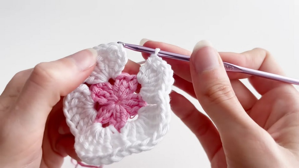 - Chain 2 stitches for separation and continue with another set of 3 double crochets.