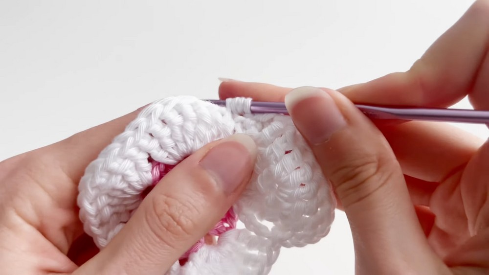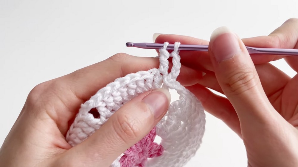 - Finish the round: Slip stitch into the 3rd chain from the beginning to complete the round.