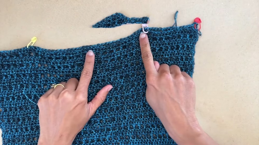 - Work more or fewer rows until the panel length meets your desired measurement from shoulder to hem.