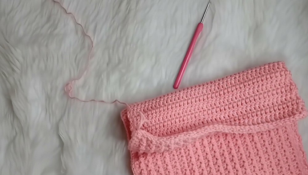 - Repeat double crochet rows to desired length for the back panel that will wrap around your body.