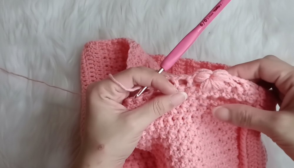 Step 1: Attach yarn to the top edge of the front part.