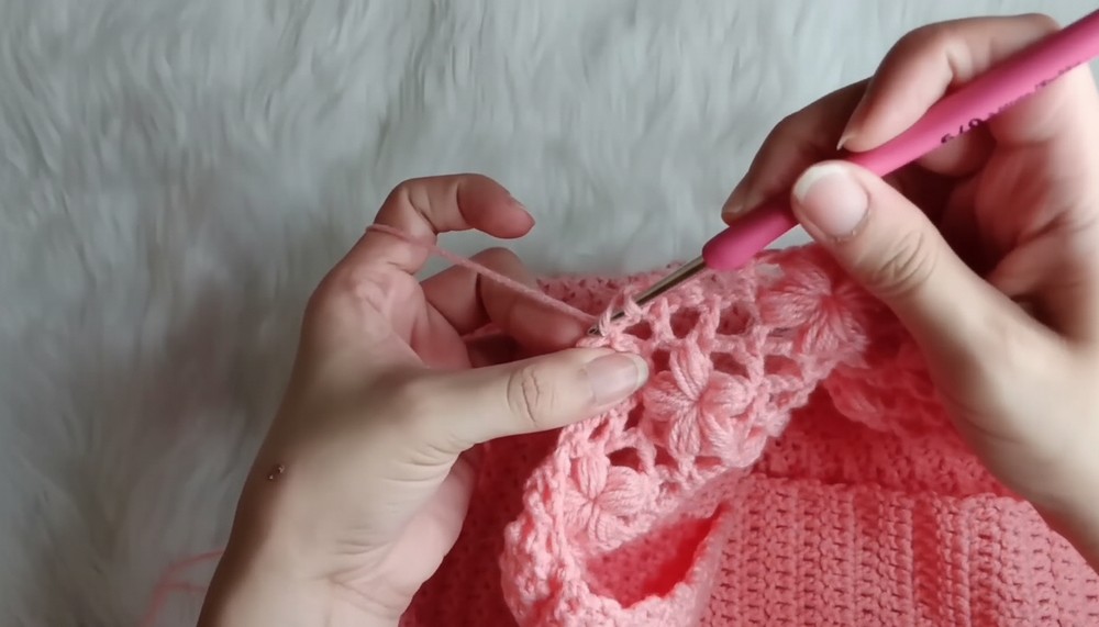 Work until you have approximately 7 rows of flower grids, or until you’re satisfied with the height of the top.