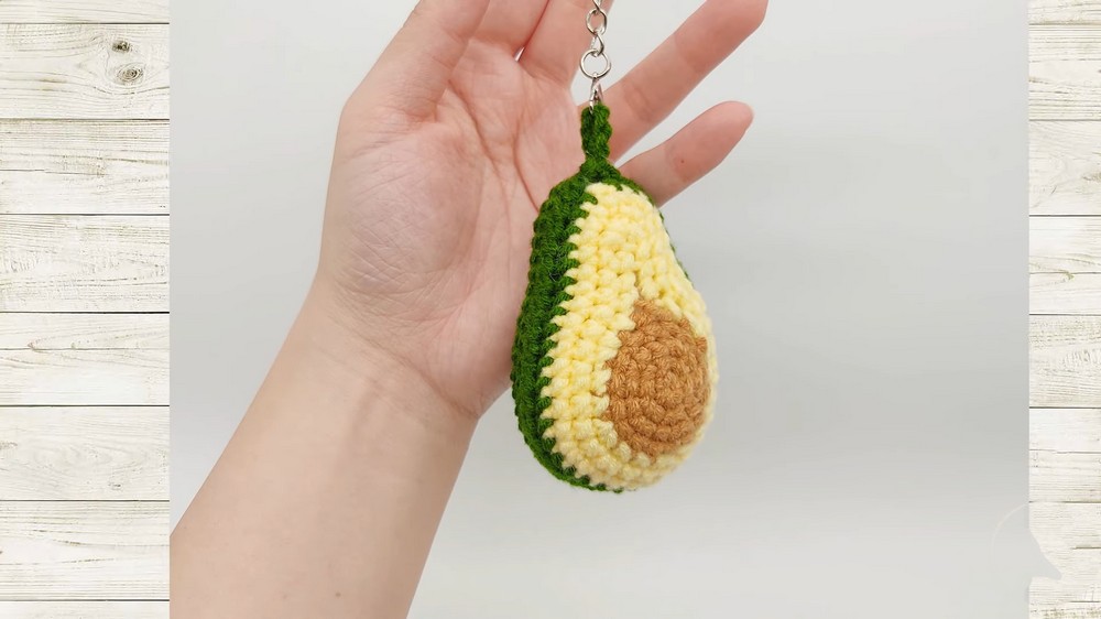 - Sew or attach a metal keychain loop to the top center of the avocado.