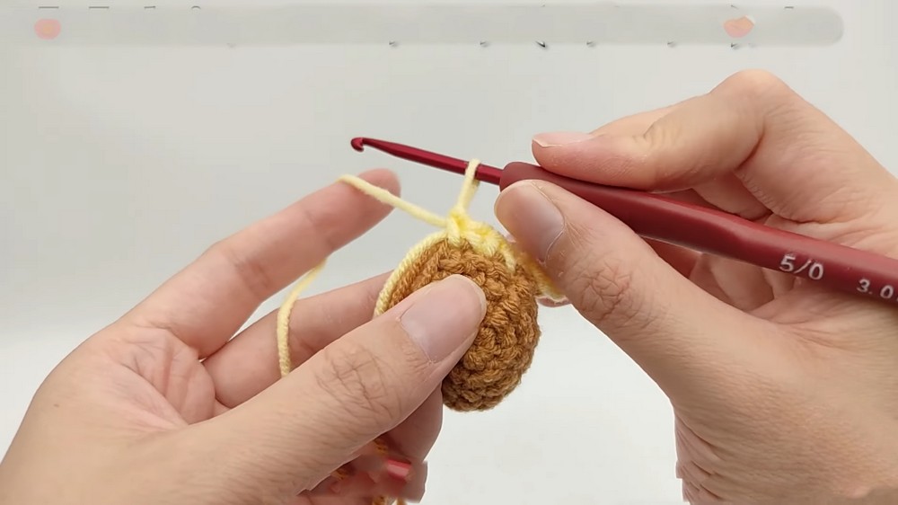 - In the stem section, work 3 sc, 1 inc to finish the round.