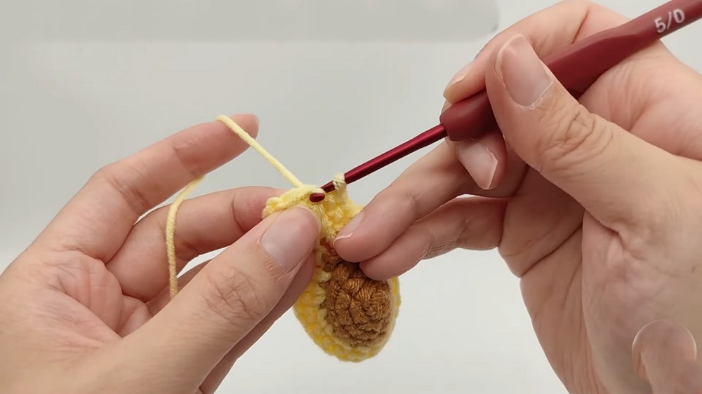 - At the end, work 3 sc and 1 inc in the stem portion.