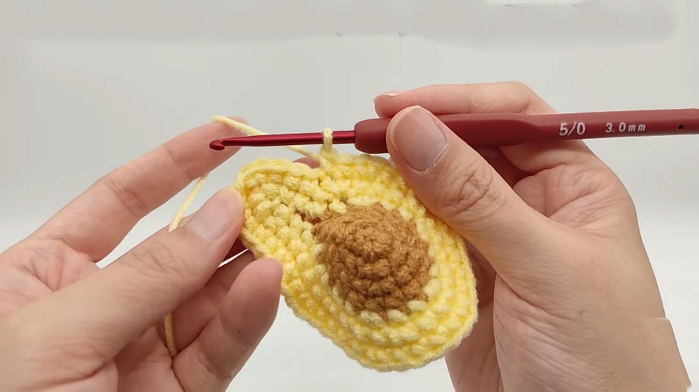 - The avocado consists of two separate panels: front and back, worked in rounds.