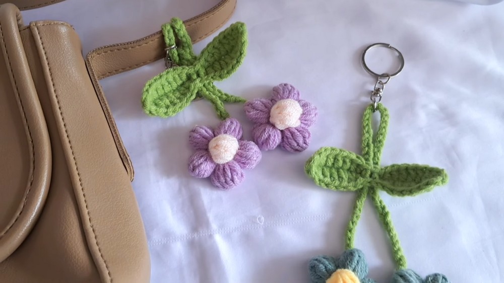 Easy Free Crochet Puff Flower Keychain Pattern to Upgrade Accessories