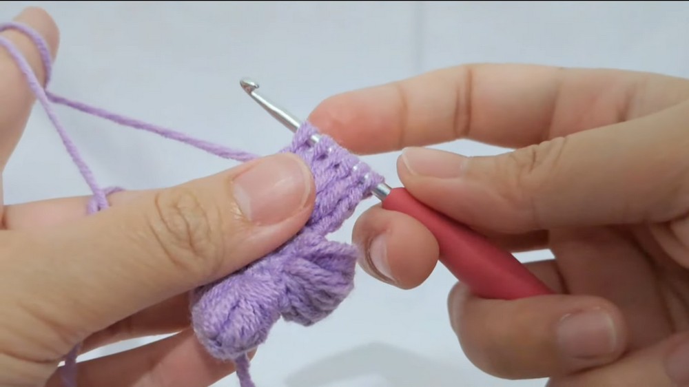 - HDC in next chain, 5 DC in following 5 chains, HDC in next chain, SC in next chain. (Repeat this pattern for the rest of the chain).
