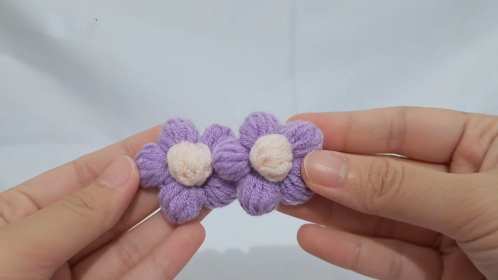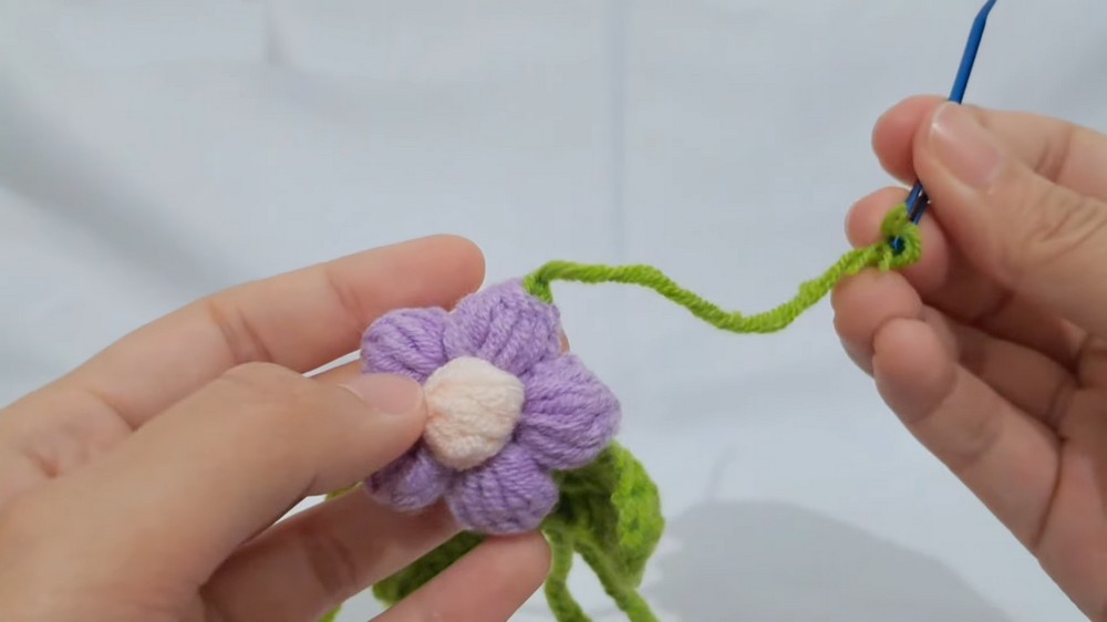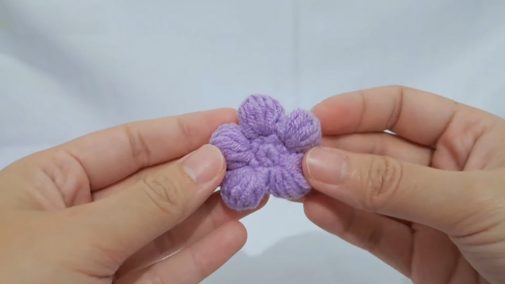- After completing the last petal, fasten off and weave in ends.