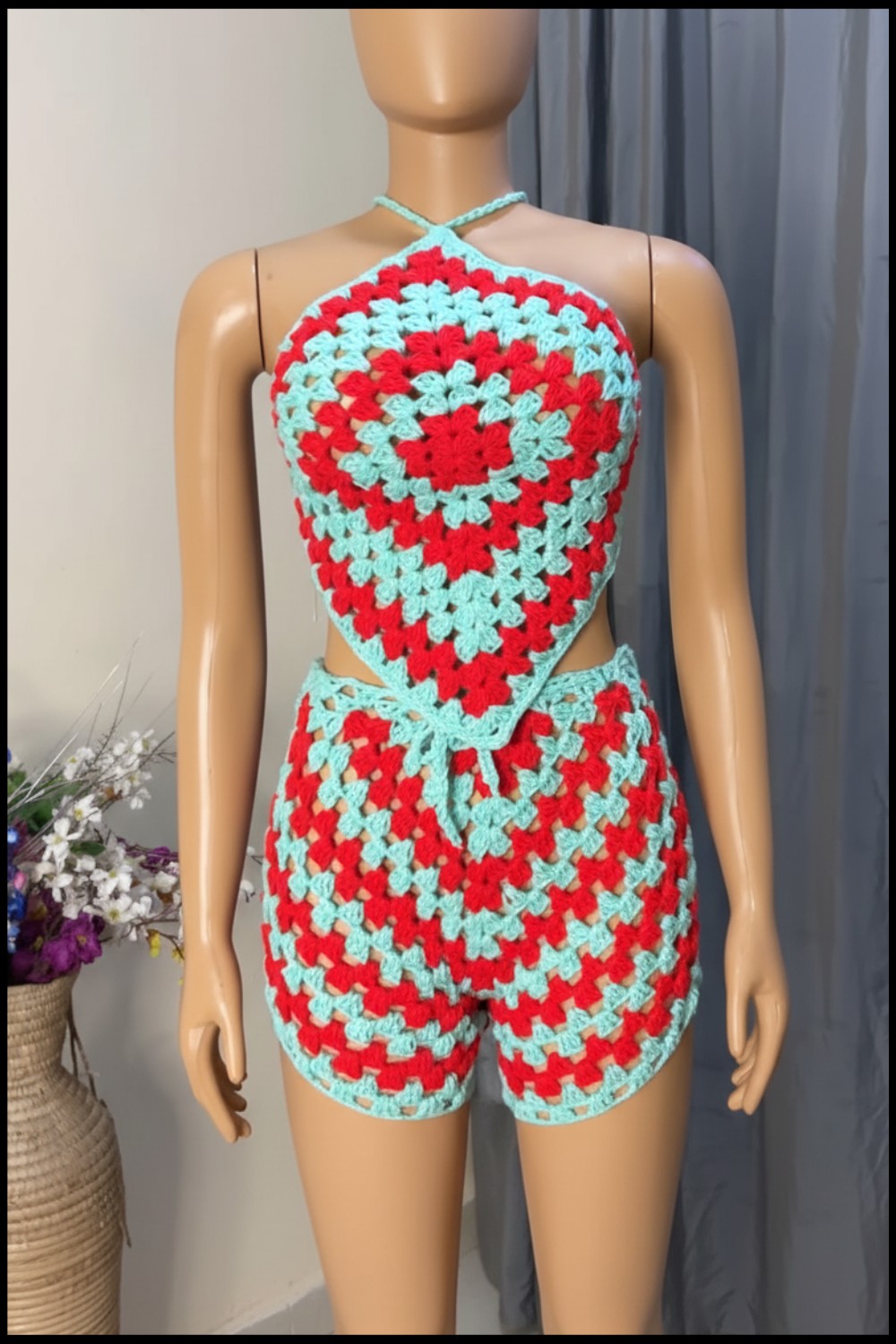 It’s like wearing a cheerful rainbow, perfect for brightening up any summer day. The beauty of this top shines through its clean, classic design and the way the colors blend into a fun and happy outfit. With thick, secure shoulder straps and comfortable open stitches, it feels lightweight while giving off major handmade boutique vibes.