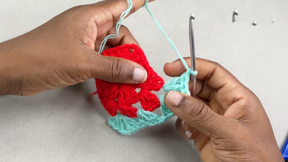 - For corner spaces, crochet 2 single crochets, chain 2, 2 single crochets.