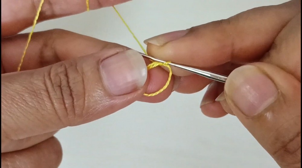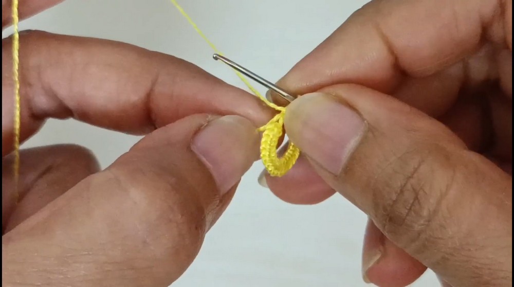 2. After creating the ring, make one chain stitch to keep it secure.