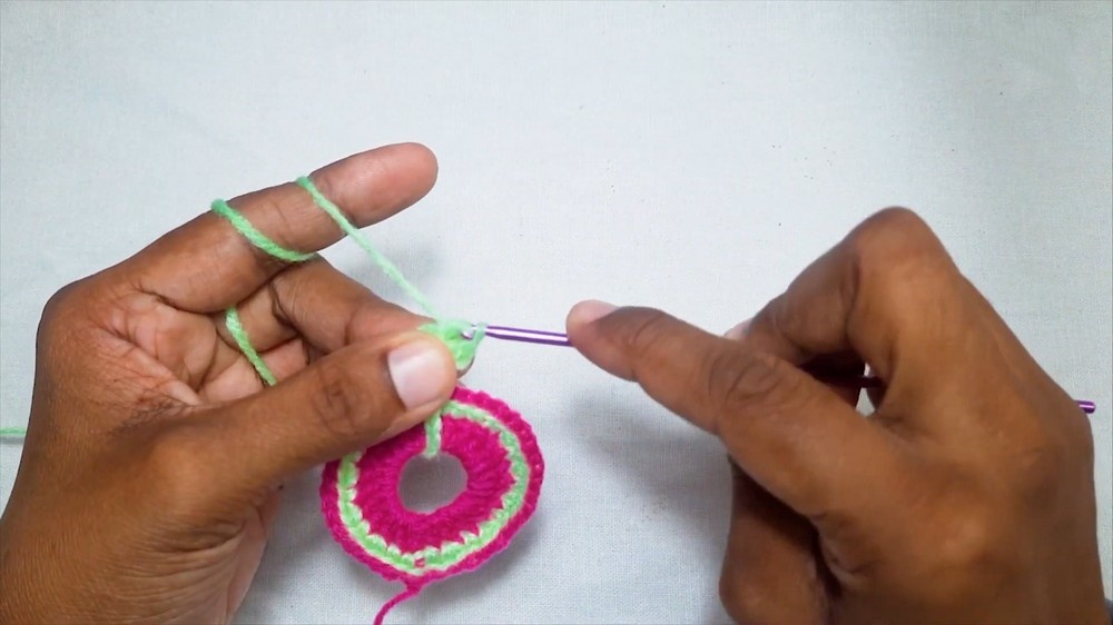 - Slip stitch into the first chain to join, creating a loop or ring.