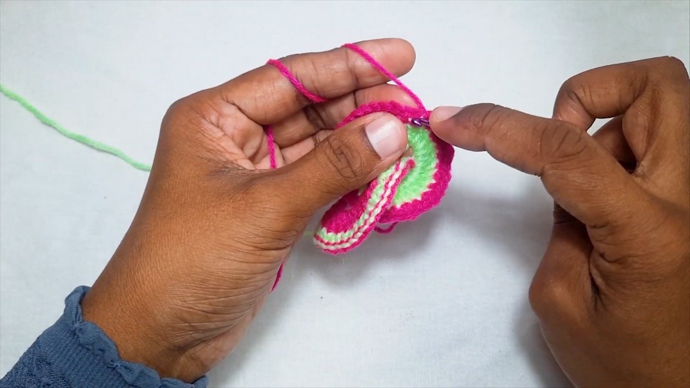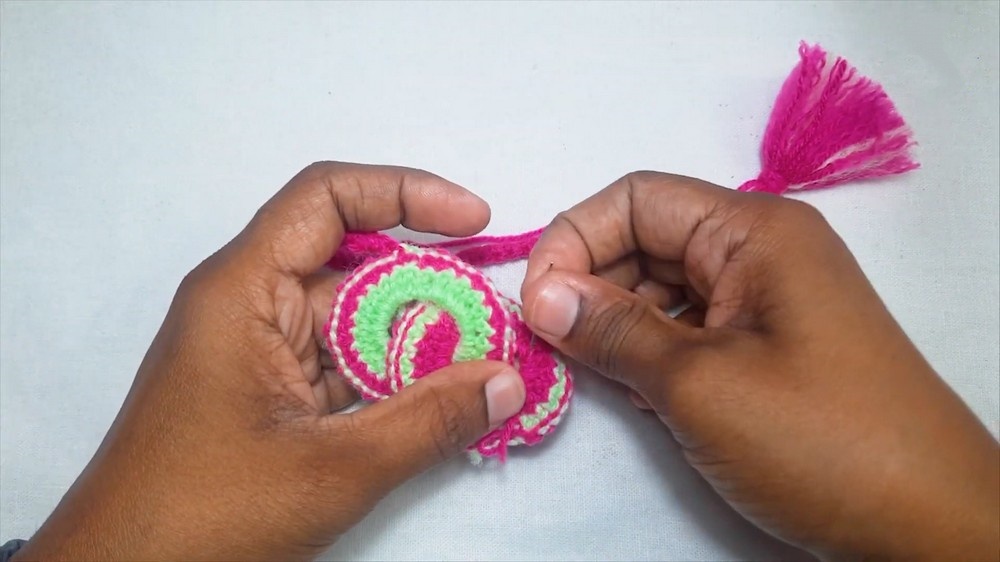 - Chain 1, keep a long yarn tail, and cut off the yarn, weaving in ends.