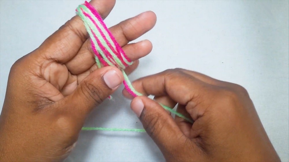 - Wrap yarn around your fingers 10 times twice (total 20 wraps) to make a full tassel.