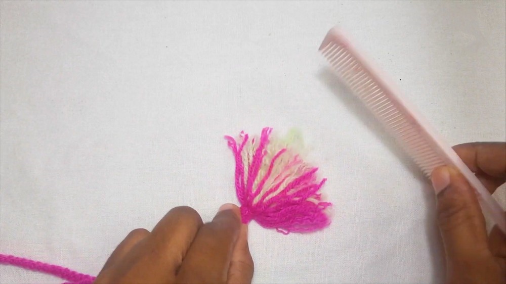 - Create a tassel by wrapping yarn 20 times around fingers for thickness.