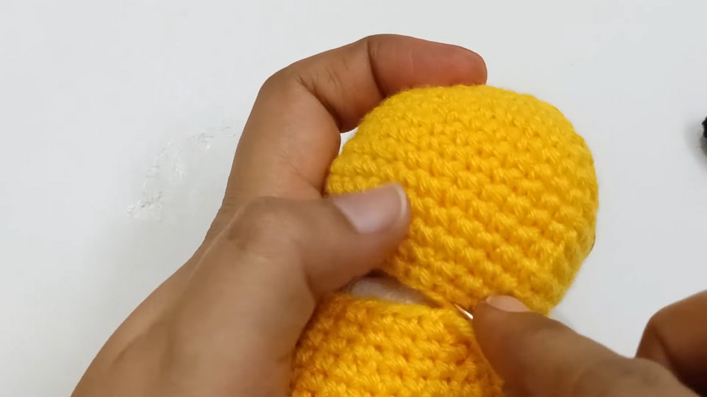- Firmly stuff the head with fiberfill stuffing. Add layer by layer to maintain desired shape.