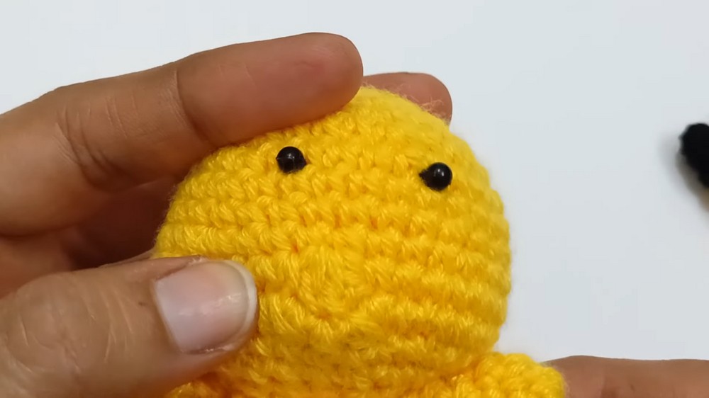 - Sew black beads for eyes or embroider round black eyes onto the head.