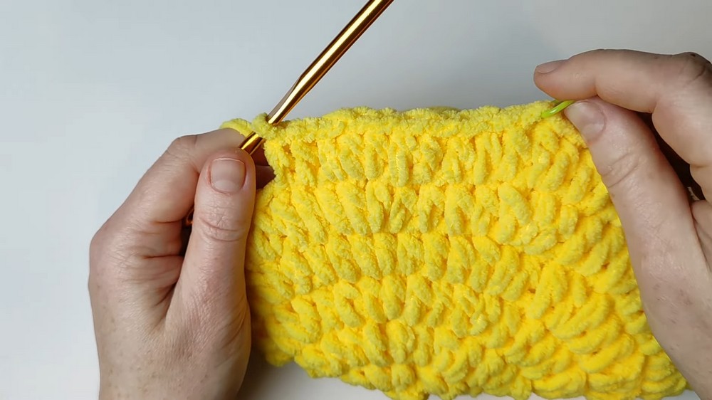 - Row 4: Work 4 HDCs, followed by 1 decrease. Repeat on both sides.