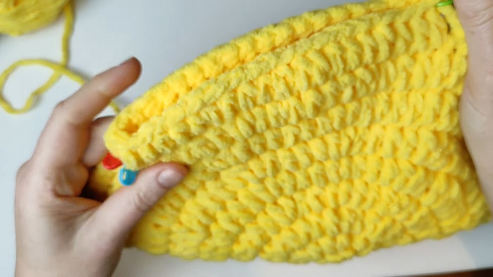 - Row 2: On the second side (next set of 19 stitches), work 19 HDCs, connecting both sides.