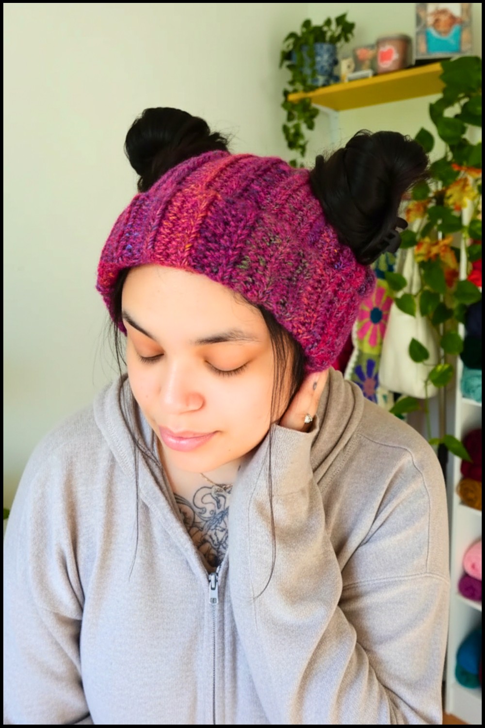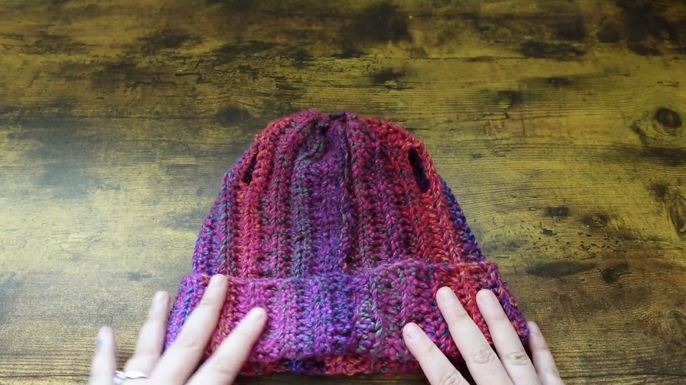 - Position the pigtail holes, and you’re ready to wear your beanie!