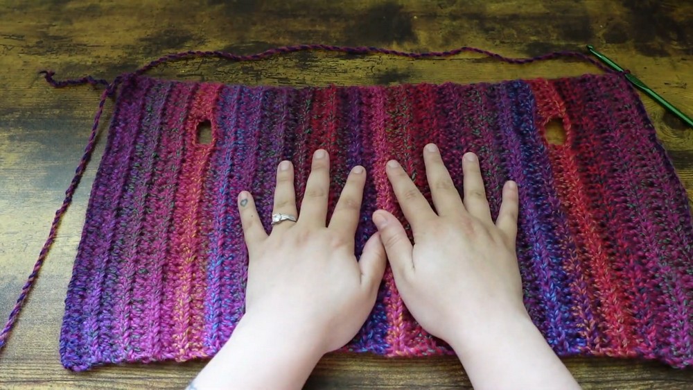 - After completing the hole, work 7 more rows of half double crochet BLO to form the last section and match the initial 7 rows.