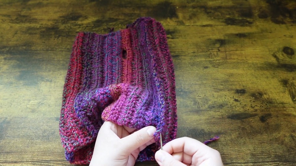 - Using a tapestry needle, align the edges and slip stitch or whip stitch the seam together to form a tube.