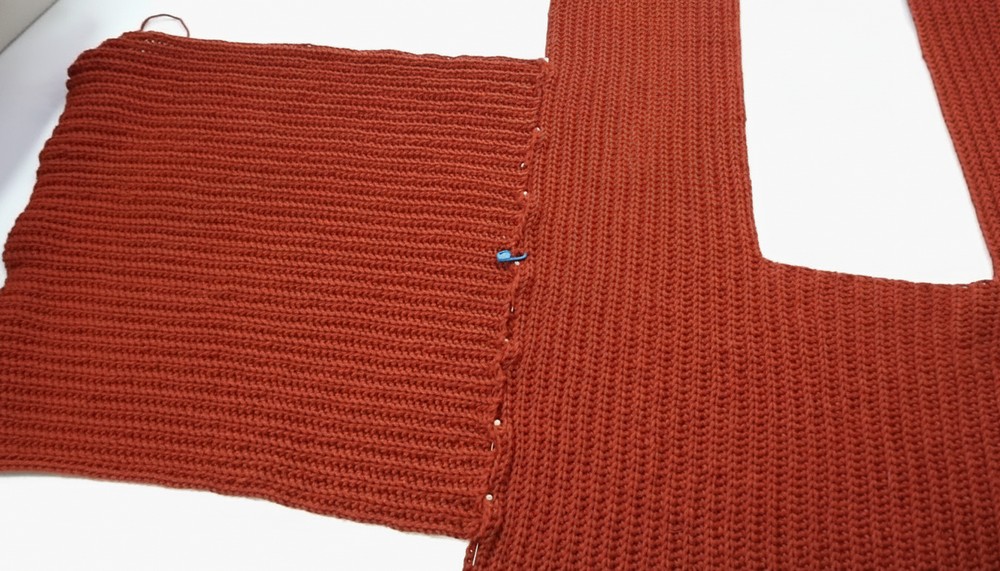 - Rejoin yarn at the midpoint marker and work rows across the opposite half.