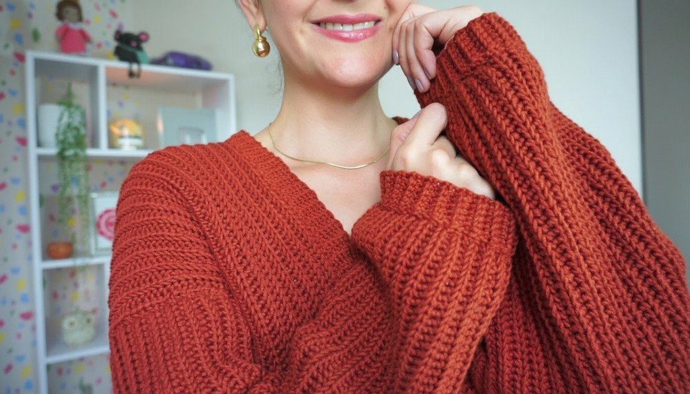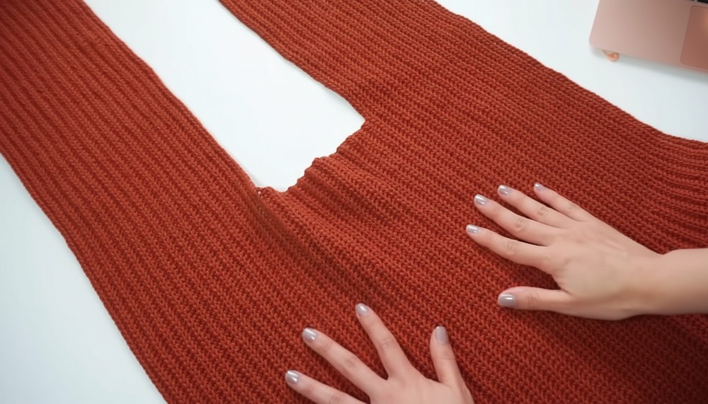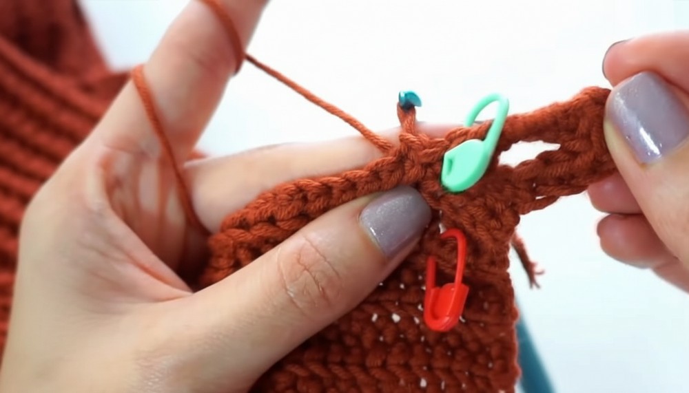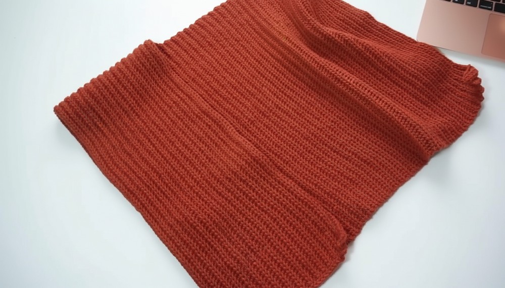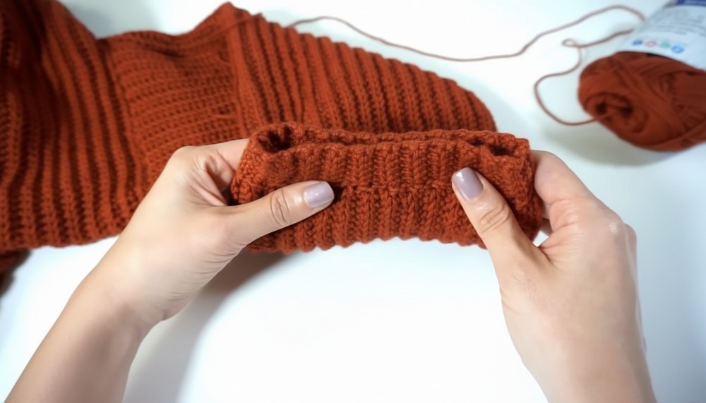 - Attach yarn at any point along the neckline or hem. Work in sc (single crochet) or hdc rows to add ribbed texture.