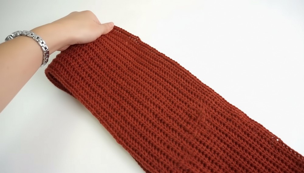- Crochet until the length matches the neck measurement (15cm in the example).