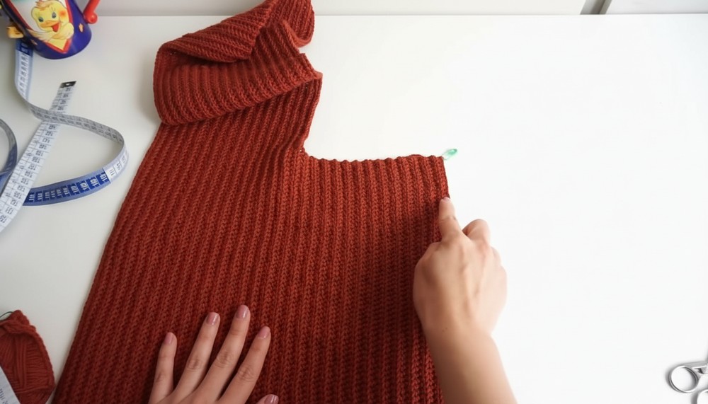 - Sew along the length of the sleeve and side seams of the cardigan body.
