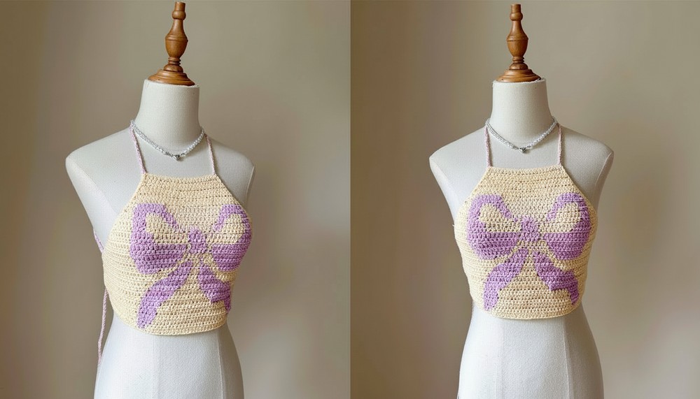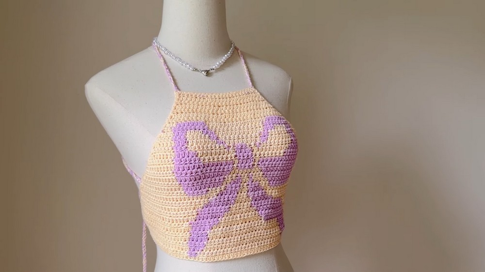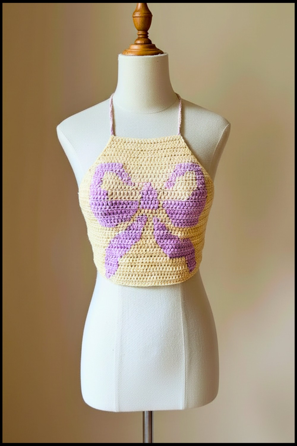 This Free Crochet Helter Top Pattern is a charming and creative project that showcases your crochet skills while offering a versatile and stylish piece for your wardrobe. The unique bow design, vibrant colors, and adjustable ties make it perfect for various occasions. Customize your crop top with your favorite design motifs to make it uniquely yours.