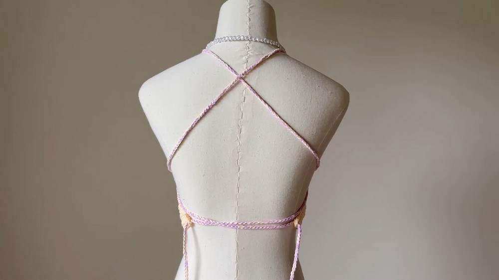 - Tie the straps at the back, allowing the two sets of ties to diagonal cross for an elegant look.