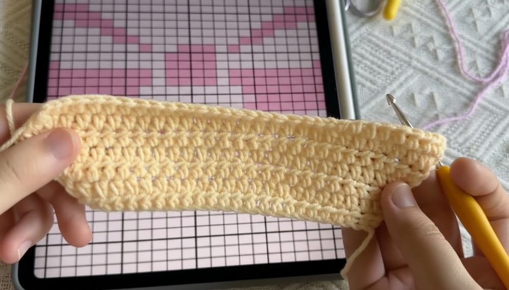 - Work single crochet (SC) stitches evenly along all sides of the trapezoid, ensuring you add stitches along the side edges for a uniform look.