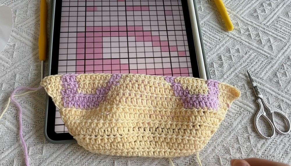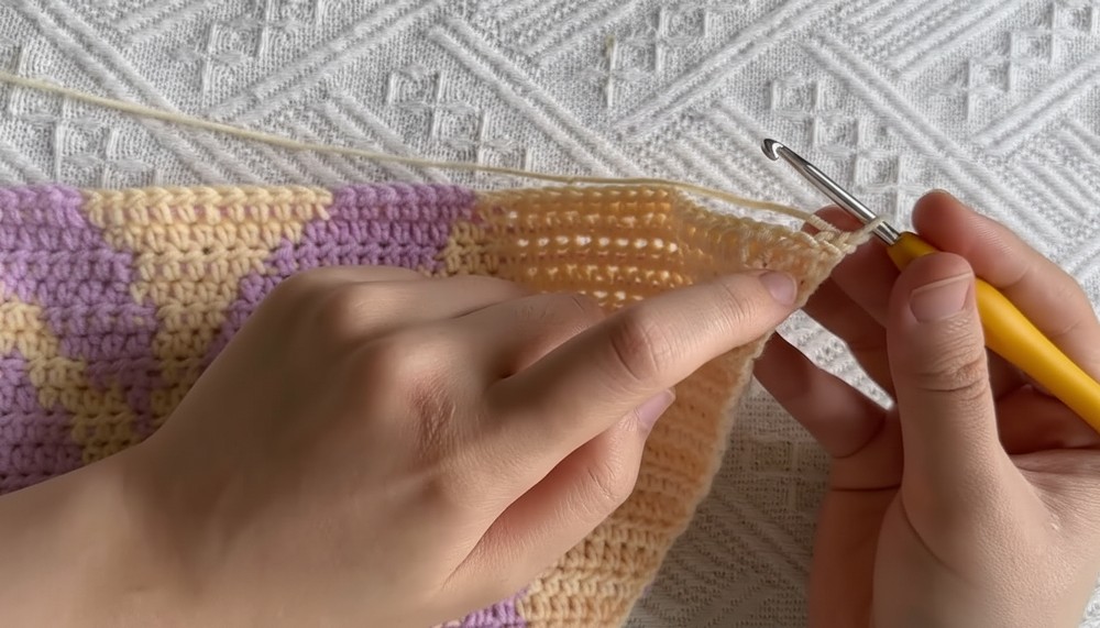 - Remember to carry the secondary color along the edge and hide it within the stitches to avoid loose strands.