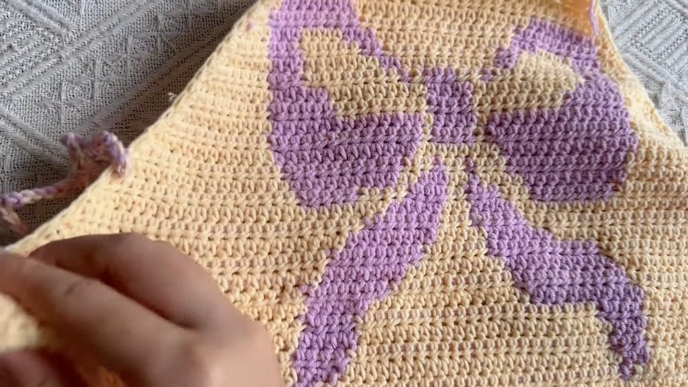- After finishing the bow design, continue working additional rows in the base color to add length as necessary.