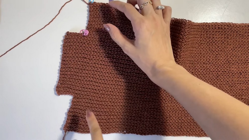 - Work slip stitch seams along the sides, stopping at the armhole markers.