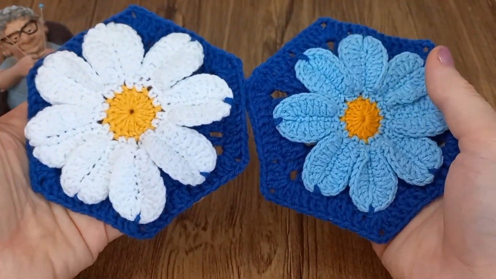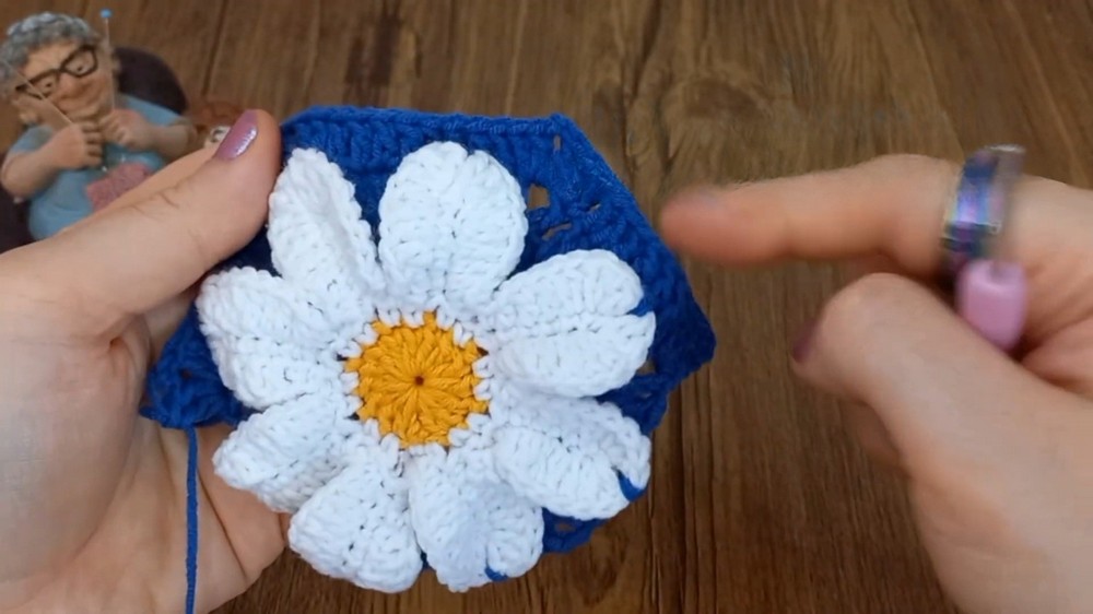 • Make the Flower First: It’s essential to crochet the flower base before beginning the hexagon.