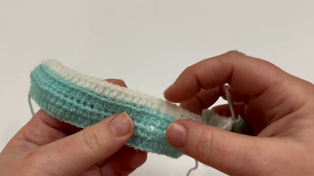 - Join your secondary yarn (e.g., White) to the last stitch.