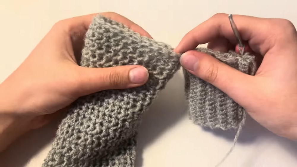 - Insert hook through matching stitches on both ends, yarn over, pull through both loops, repeat for each stitch side-to-side.