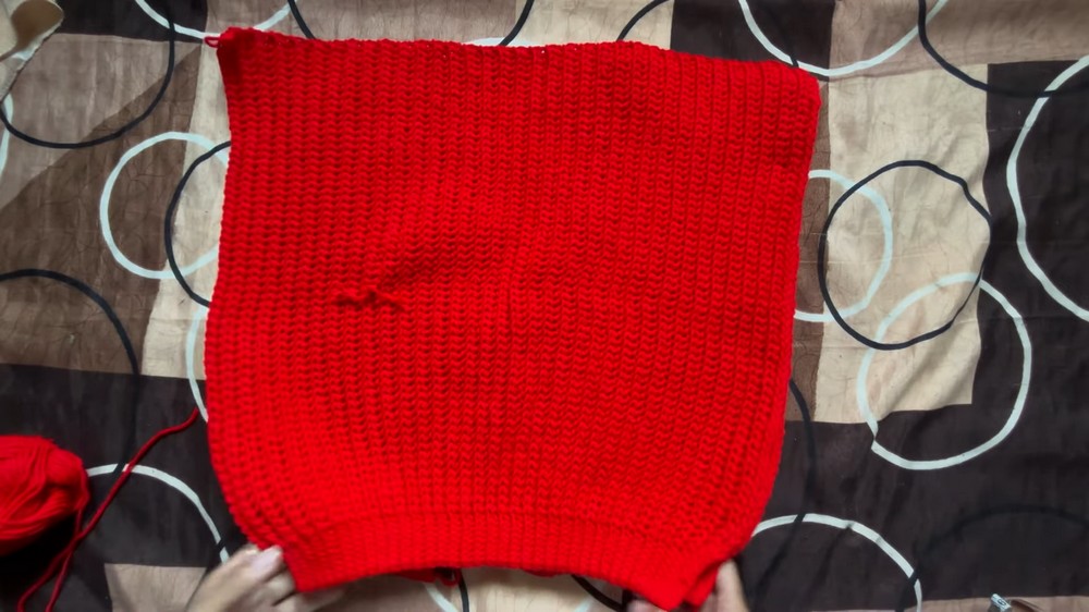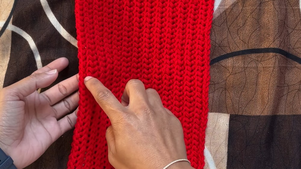 Step 2: Follow the same stitch pattern used in the back panel (half double crochet slip stitch + slip stitch) until you complete 35 rows for one panel.