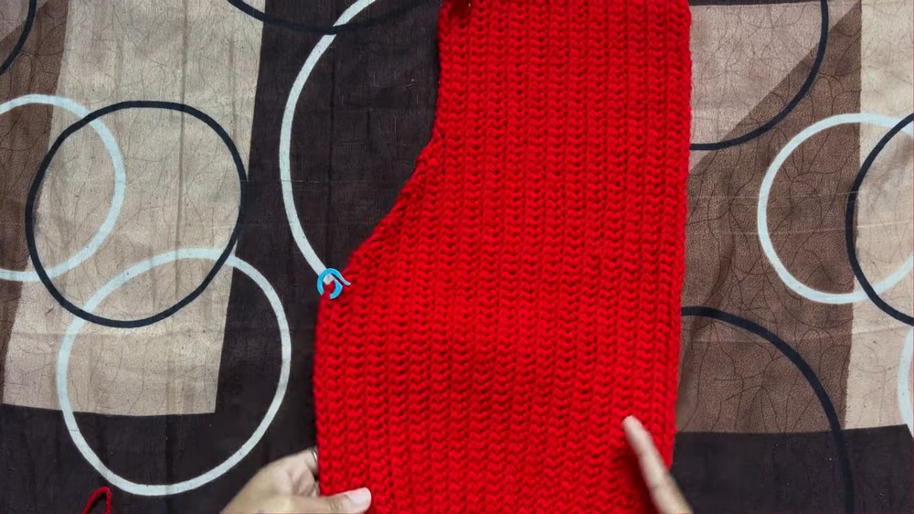 Step 2: Count 25 rows on the back panel from the bottom and mark with stitch markers. Match these with the corresponding rows on the front panel for consistency.