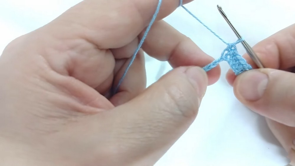 • Skip the first 3 chains. In the 4th chain, work 1 hdc.