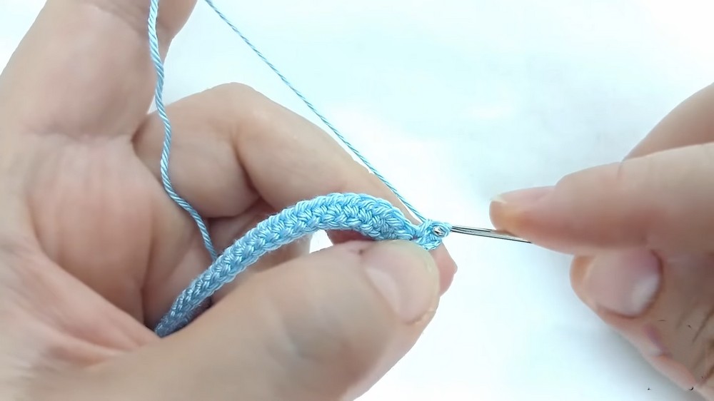 • Chain 1, fasten off, leaving extra yarn (about 8 inches/20 cm) for sewing.
